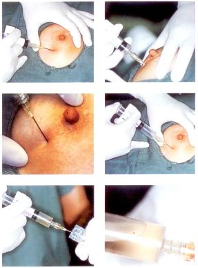 5.慢慢將抽吸把手恢復原位,解除負壓后,改變穿刺方向,