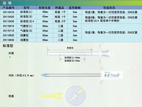 每盒5套,每支為一次性使用包裝,EOG滅菌。