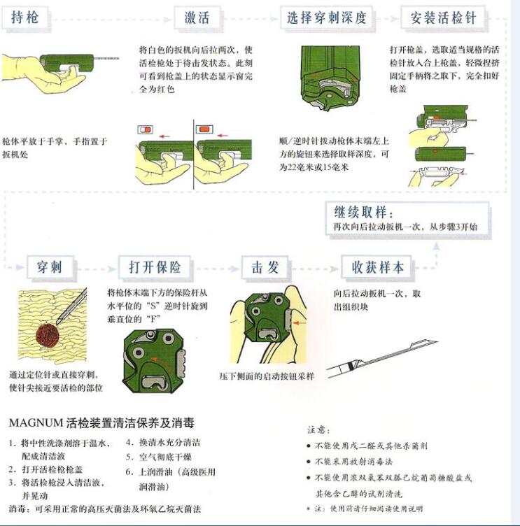 真正多功能的活檢槍,選配不同型號的活檢針,可從多種軟組織如肝臟,腎臟,前列腺,脾臟,淋巴結(jié)和各種臟器的腫瘤內(nèi)取得活檢樣本,因此,能廣泛應(yīng)用于臨床各科室,且性能穩(wěn)定,可重復(fù)使用,節(jié)省費(fèi)用。
